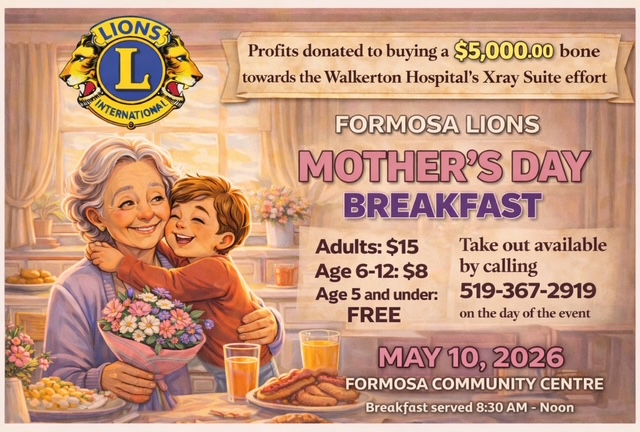 General questions and enquiries about the Formosa Lions (but NOT Lions Park bookings or Park information) should be directed to Shirley Kuntz. Box 54, Formosa ON, N0G 1W0. 519-367-5969.